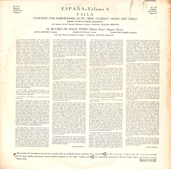 € 4.50 Media: Very Good Plus (VG+)Hoes: Very Good Plus (VG+)Manuel de Falla : Julita Bermejo, Raimundo Torres, Carlos Munguía ; Robert Veyron-Lacroix ; Orquesta Nacional De España, Ataúlfo Argenta – España—Volume 8 (LP, Album, Mono)