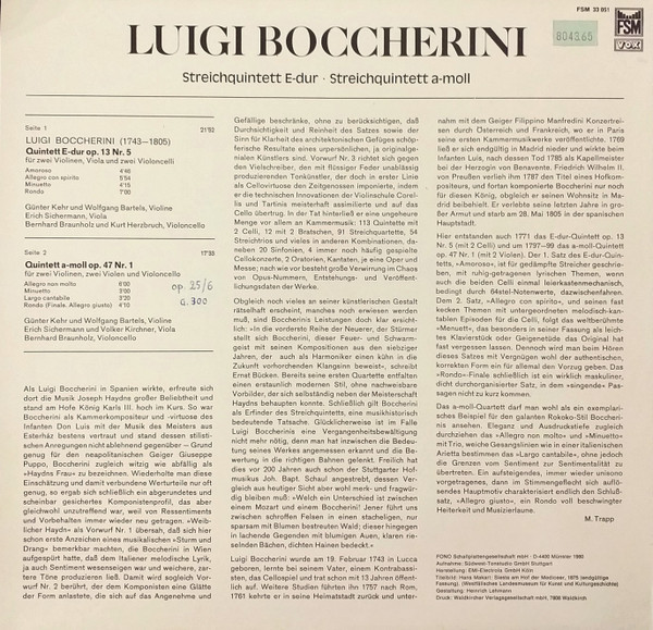 € 6.50 Media: Very Good Plus (VG+)Hoes: Very Good Plus (VG+)Luigi Boccherini – Streichquintette E-dur, a-moll (LP)