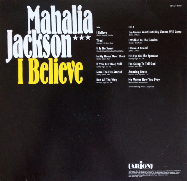€ 5.50 Media: Very Good (VG)Hoes: Very Good (VG)Mahalia Jackson – I Believe (LP, Comp)