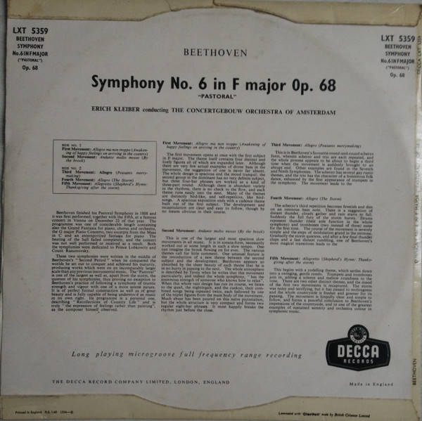 € 7.50 Media: Near Mint (NM or M-)Hoes: Very Good (VG)Ludwig van Beethoven – Erich Kleiber, Concertgebouworkest – Symphony No. 6 “Pastoral” (LP, Mono, RE)