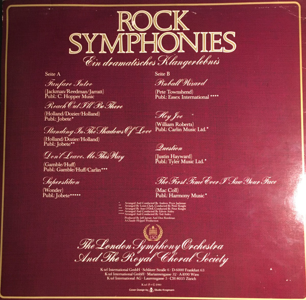 € 7.50 Media: Very Good (VG)Hoes: Good Plus (G+)London Symphony Orchestra And The Royal Choral Society – Rock Symphonies (Ein Dramatisches Klangerlebnis) (LP, Comp)