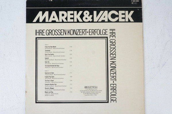 € 5.00 Media: Very Good (VG)Hoes: Very Good Plus (VG+)Marek & Vacek – Ihre Grossen Konzert-Erfolge (LP)