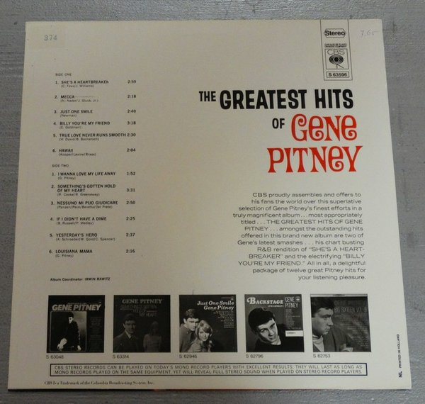 € 5.00 Media: Near Mint (NM or M-)Hoes: Near Mint (NM or M-)Gene Pitney – Gene Pitney (LP, Comp)