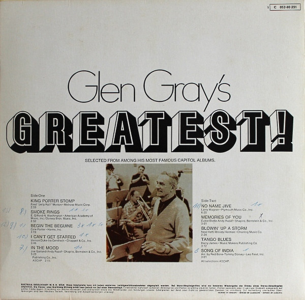 € 7.50 Media: Near Mint (NM or M-)Hoes: Very Good Plus (VG+)Glen Gray – Glen Gray’s Greatest! (LP, Comp)