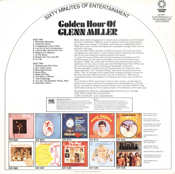 € 5.00 Media: Very Good Plus (VG+)Hoes: Very Good (VG)Glenn Miller – Golden Hour Of Glenn Miller (LP, Comp)
