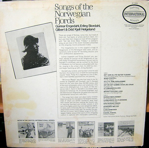 € 5.00 Media: Very Good (VG)Hoes: Very Good (VG)Gunnar Engedahl And Erling Stordahl*, Gilbert Og Odd Kjell Helgeland – Songs Of The Norwegian Fjords (LP, Comp)