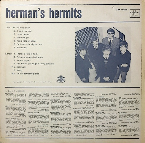 € 5.00 Media: Very Good Plus (VG+)Hoes: Very Good Plus (VG+)Herman’s Hermits – Herman’s Hermits (LP, Comp, Mono)