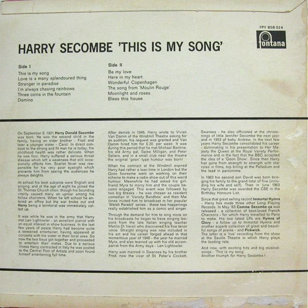 € 7.00 Media: Very Good Plus (VG+)Hoes: Very Good (VG)Harry Secombe – This Is My Song (LP, Comp)