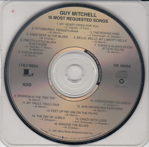 € 7.00 Media: Near Mint (NM or M-)Hoes: Very Good Plus (VG+)Guy Mitchell – 16 Most Requested Songs (CD, Comp, Mono, RM)