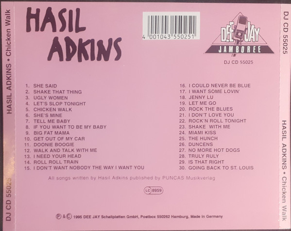 € 4.50 Media: Good (G)Hoes: Very Good (VG)Hasil Adkins – Chicken Walk (CD, Comp)
