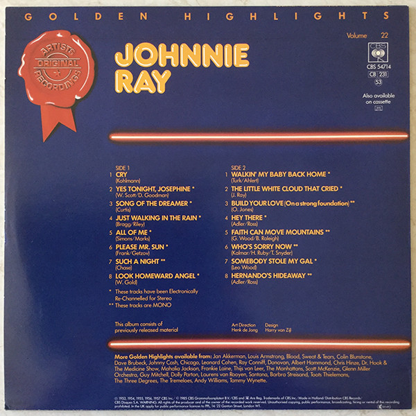 € 5.50 Media: Very Good Plus (VG+)Hoes: Very Good Plus (VG+)Johnnie Ray – Golden Highlights Volume 22 (LP, Comp, Mono)
