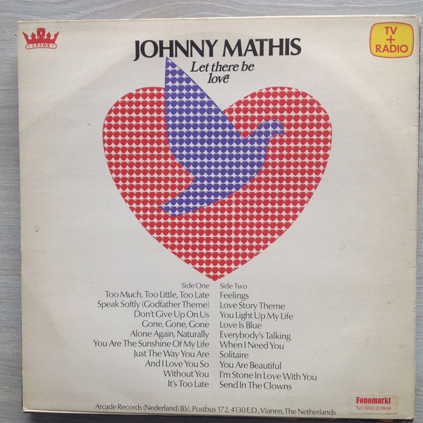 € 5.00 Media: Near Mint (NM or M-)Hoes: Near Mint (NM or M-)Johnny Mathis – Let There Be Love – His 20 Favourite Songs (LP, Comp)