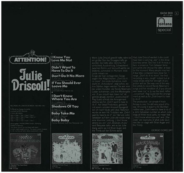 € 6.50 Media: Very Good (VG)Hoes: Very Good Plus (VG+)Julie Driscoll – Attention! Julie Driscoll! (LP, Comp)