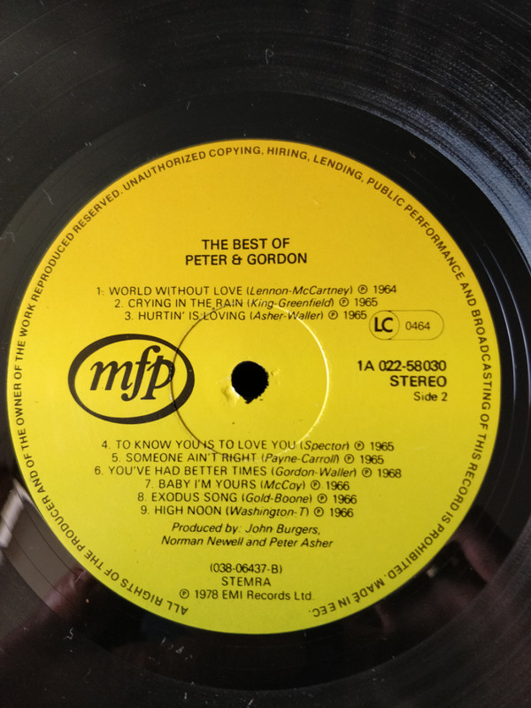 € 6.50 Media: Very Good Plus (VG+)Hoes: Very Good (VG)Peter & Gordon – The Best Of Peter & Gordon (LP, Comp)
