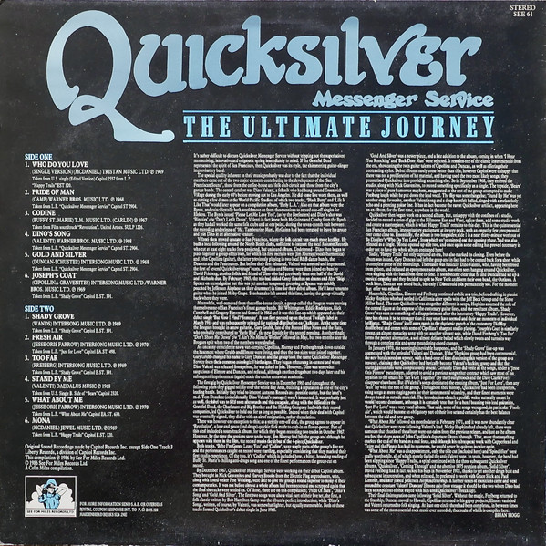€ 11.50 Media: Very Good Plus (VG+)Hoes: Very Good Plus (VG+)Quicksilver Messenger Service – The Ultimate Journey (LP, Comp)