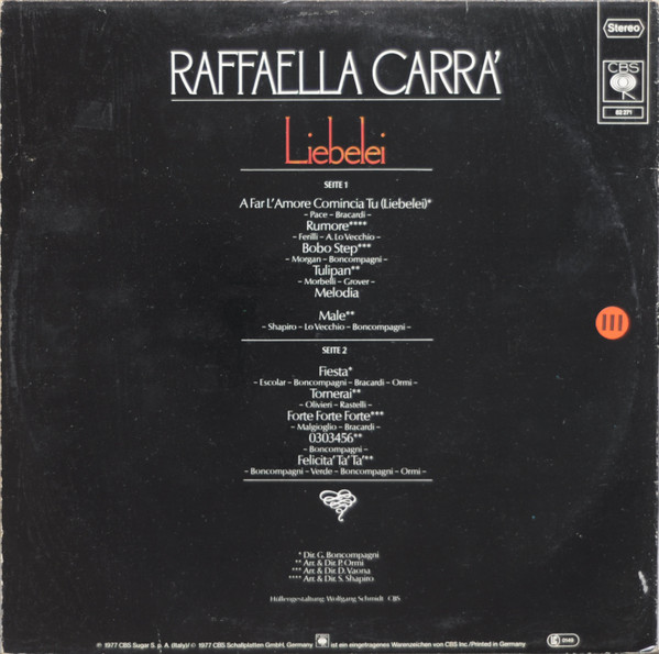 € 5.00 Media: Very Good Plus (VG+)Hoes: Very Good Plus (VG+)Raffaella Carra’* – Liebelei (LP, Comp)