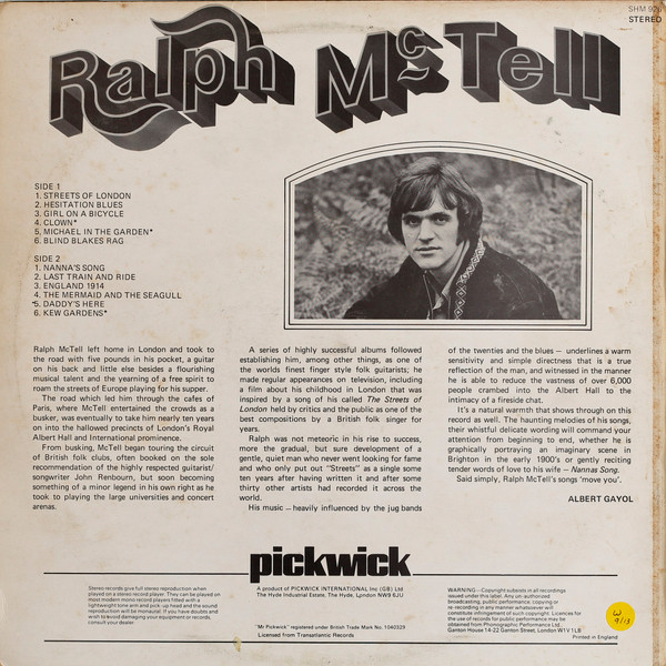 € 5.00 Media: Good Plus (G+)Hoes: Very Good (VG)Ralph McTell – Ralph McTell (LP, Comp)