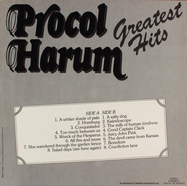 € 7.50 Media: Near Mint (NM or M-)Hoes: Near Mint (NM or M-)Procol Harum – Procol Harum’s Greatest Hits (LP, Comp)