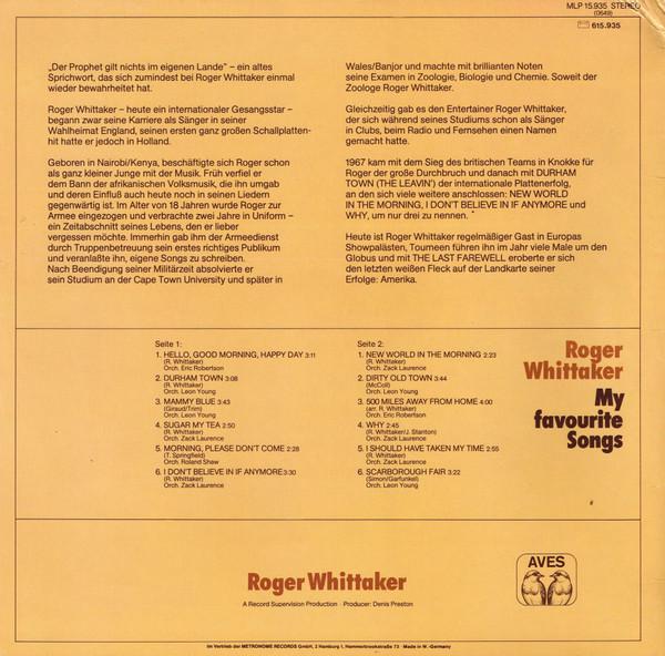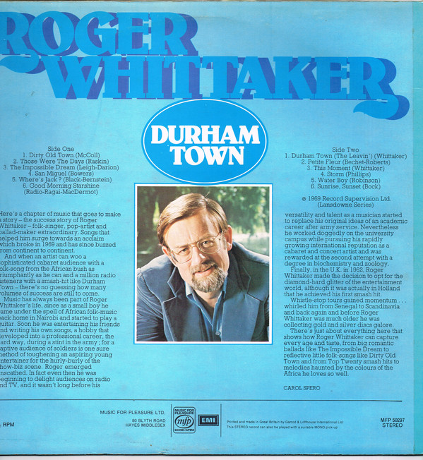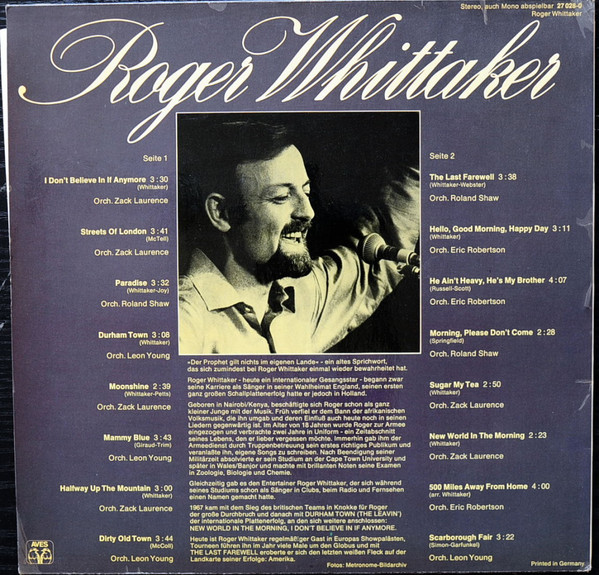€ 2.75 Media: Very Good (VG)Hoes: Very Good Plus (VG+)Roger Whittaker – Durham Town (LP, Comp)