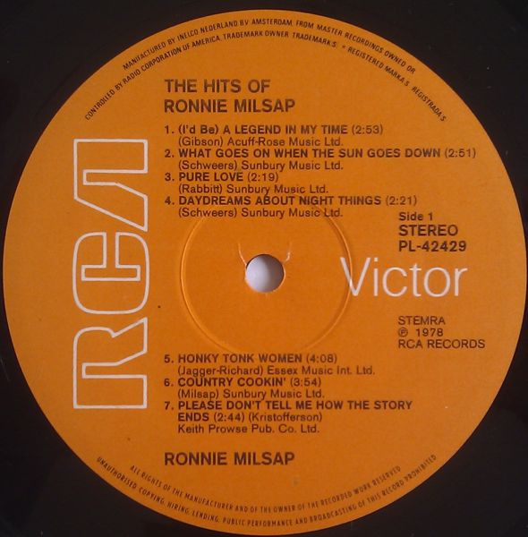 € 34.50 Media: Near Mint (NM or M-)Hoes: Near Mint (NM or M-)Ronnie Milsap – Country Club – The Hits Of Ronnie Milsap (LP, Comp)