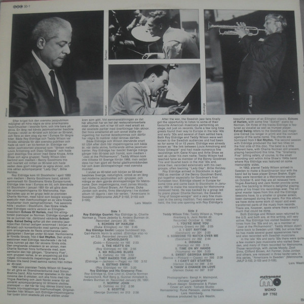 € 8.50 Media: Very Good Plus (VG+)Hoes: Very Good Plus (VG+)Roy Eldridge, Teddy Wilson – Swingin’ In Sweden (LP, Comp, Mono)