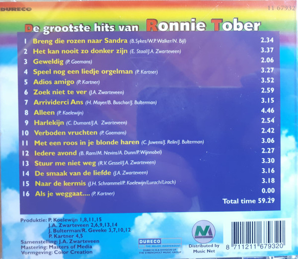 € 6.00 Media: Very Good Plus (VG+)Hoes: Very Good Plus (VG+)Ronnie Tober – De Grootste Hits Van Ronnie Tober (CD, Comp)