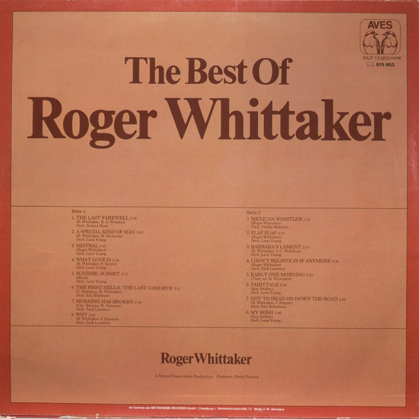 € 6.95 Media: Near Mint (NM or M-)Hoes: Very Good Plus (VG+)Roger Whittaker – Greatest Hits (LP, Comp)