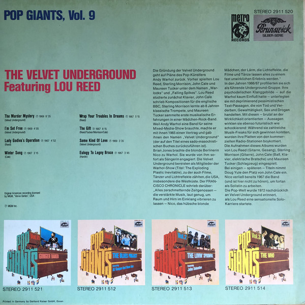 € 16.50 Media: Very Good Plus (VG+)Hoes: Very Good Plus (VG+)The Velvet Underground Featuring Lou Reed – Pop Giants, Vol. 9 (LP, Comp)