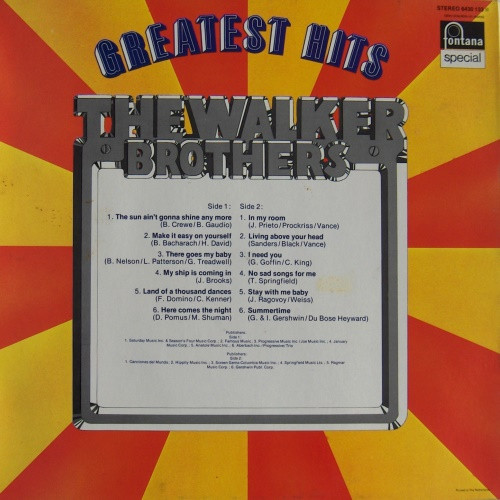 € 6.50 Media: Very Good Plus (VG+)Hoes: Very Good (VG)The Walker Brothers – The Sun Ain’t Gonna Shine Anymore (LP, Comp)