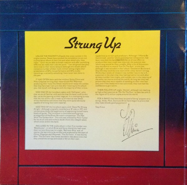 € 20.00 Media: Very Good Plus (VG+)Hoes: Very Good Plus (VG+)The Sweet – Strung Up (LP, Album, Gat + LP, Comp)