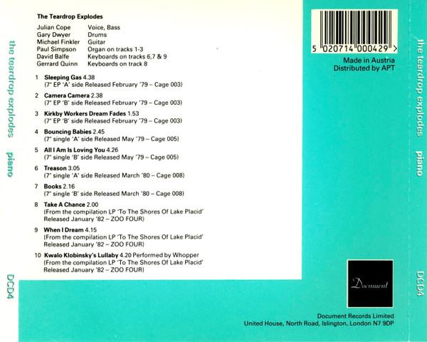 € 10.00 Media: Very Good Plus (VG+)Hoes: Very Good Plus (VG+)The Teardrop Explodes – Piano (CD, Comp)