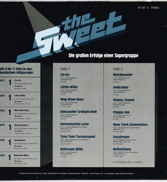 € 26.50 Media: Very Good (VG)Hoes: Very Good Plus (VG+)The Sweet – The Best Of Sweet (CD, Comp)