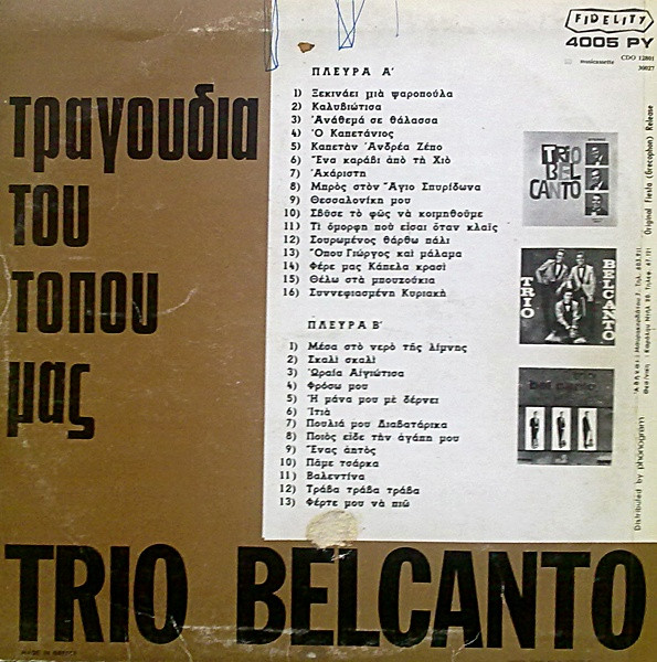 Trio Bel Canto – Τραγούδια Του Τόπου Μας (LP, Comp)