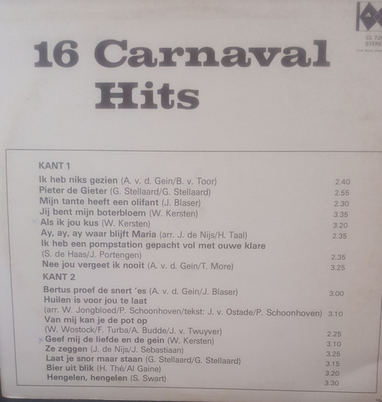€ 7.50 Media: Very Good Plus (VG+)Hoes: Very Good Plus (VG+)Various – 16 Carnaval Hits (LP, Comp)