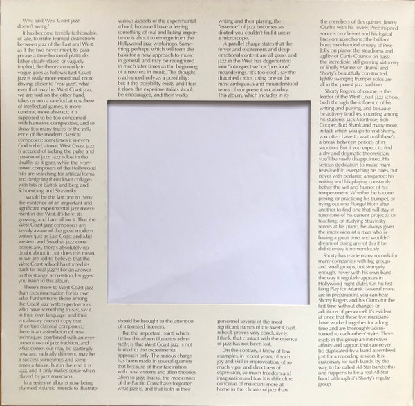 € 7.00 Media: Very Good Plus (VG+)Hoes: Very Good (VG)Shorty Rogers – West Coast Jazz (LP, Album, RE, Gat)