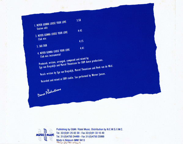 € 39.50 Media: Near Mint (NM or M-)Hoes: Very Good Plus (VG+)Egma – Never Gonna Loose Your Love (CD, Maxi)