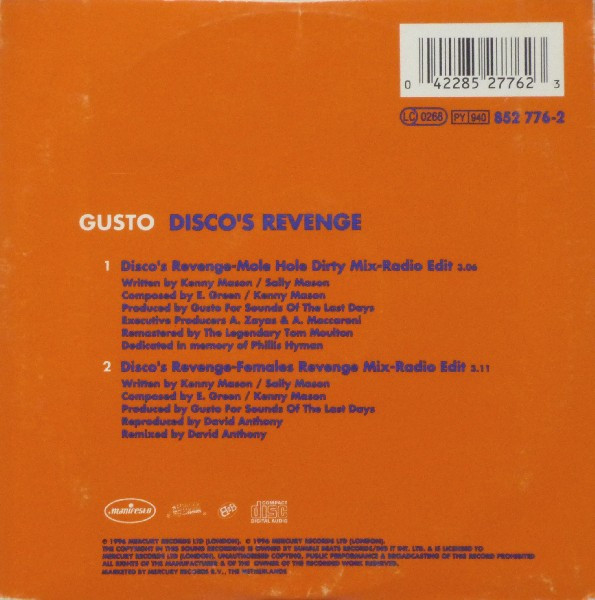 € 1.00 Media: Good (G)Hoes: Very Good (VG)Gusto – Disco’s Revenge (CD, Single)
