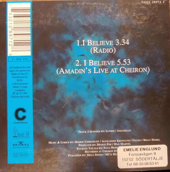 € 6.50 Media: Very Good Plus (VG+)Hoes: Very Good Plus (VG+)Herbie (4) – I Believe (CD, Single)