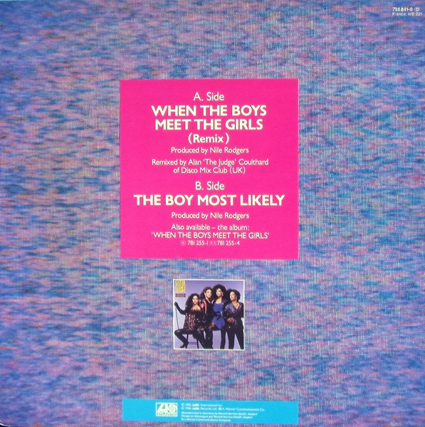 € 6.00 Media: Very Good Plus (VG+)Sister Sledge – When The Boys Meet The Girls (Remix) (12″)