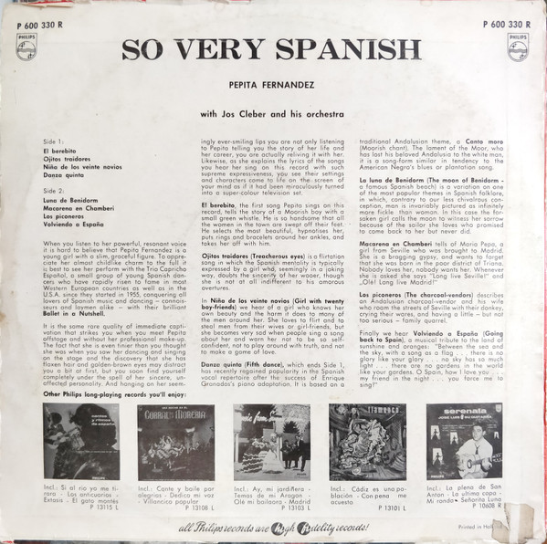 Pepita Fernandez with Jos Cleber And His Orchestra – So Very Spanish (10″)