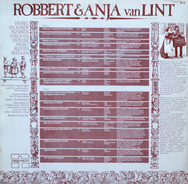 € 6.50 Media: Near Mint (NM or M-)Hoes: Very Good Plus (VG+)Robbert & Anja Van Lint – Hemel En Aarde Kunnen Vergaan, Vrolijke Musici Blijven Bestaan (LP, Album)