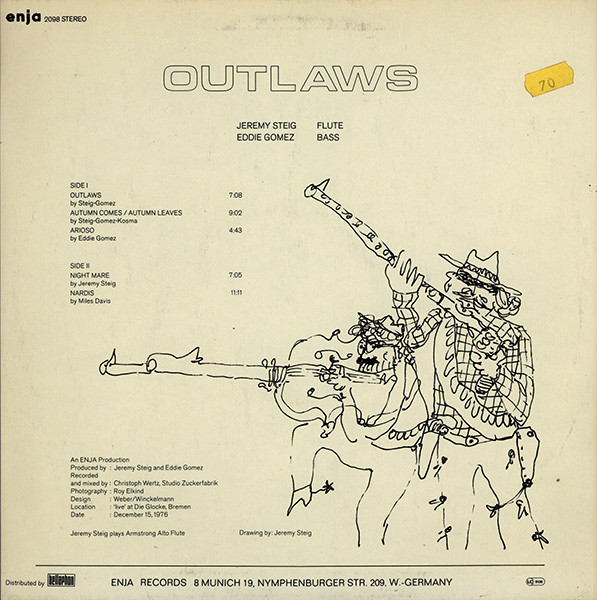€ 11.50 Media: Very Good Plus (VG+)Hoes: Very Good (VG)Jeremy Steig – Eddie Gomez – Outlaws (LP, Album)