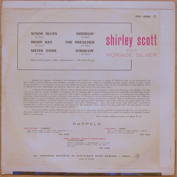 € 34.50 Media: Very Good Plus (VG+)Hoes: Very Good Plus (VG+)Shirley Scott – Plays Horace Silver (LP, Album, Mono)