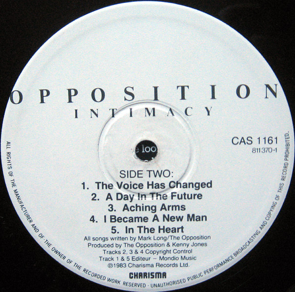 € 12.00 Media: Very Good (VG)Hoes: Very Good Plus (VG+)Opposition – Intimacy (LP, Album)