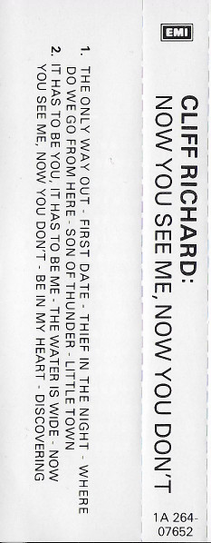 € 3.50 Media: Very Good (VG)Hoes: Good (G)Cliff Richard – Now You See Me, Now You Don’t (Cass, Album)