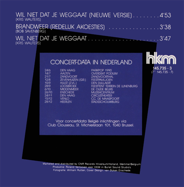 € 4.00 Media: Very Good (VG)Hoes: Very Good Plus (VG+)Clouseau – Wil Niet Dat Je Weggaat (CD, Single, Ltd)