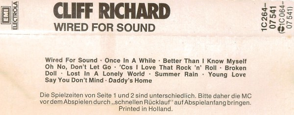€ 8.50 Media: Very Good Plus (VG+)Hoes: Very Good Plus (VG+)Cliff Richard – Wired For Sound (Cass, Album)