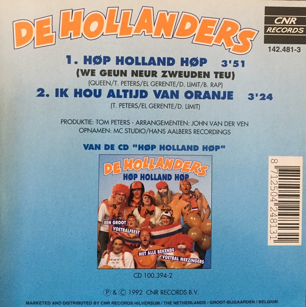 € 5.00 Media: Very Good (VG)Hoes: Very Good (VG)De Hollanders – Høp Holland Høp (We Geun Neur Zweuden Teu)) (CD, Single, Car)