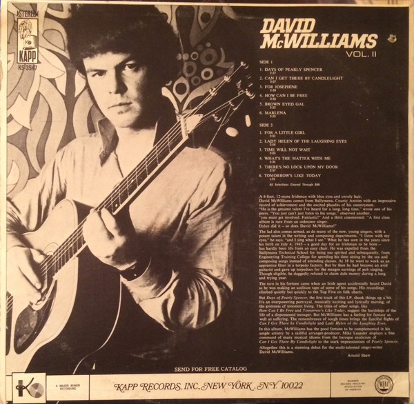 € 7.00 Media: Very Good Plus (VG+)Hoes: Very Good (VG)David McWilliams – Days Of Pearly Spencer – Who Killed Ezra Brymay (LP, Album)