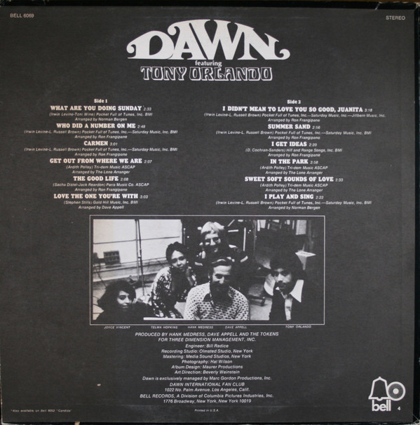€ 5.50 Media: Very Good (VG)Hoes: Very Good (VG)Dawn (5) Featuring Tony Orlando – Tuneweaving (LP, Album)